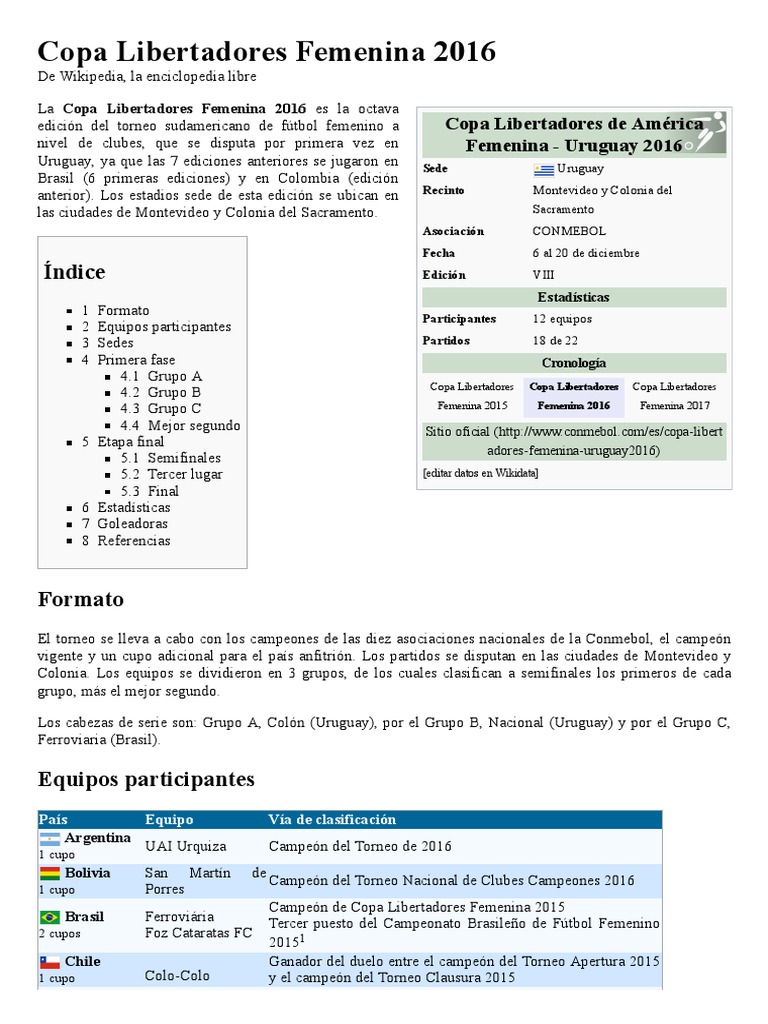 Le CONMEBOL Libertadores Femenina nommée Copa Libertadores Femenina Portugais. 64 rows Copa Libertadores de América Femenina. Zapoczątkowany został w 2009 roku przez CONMEBOL jako Copa Libertadores FemeninaW rozgrywkach uczestniczyły mistrzowie swoich krajów.